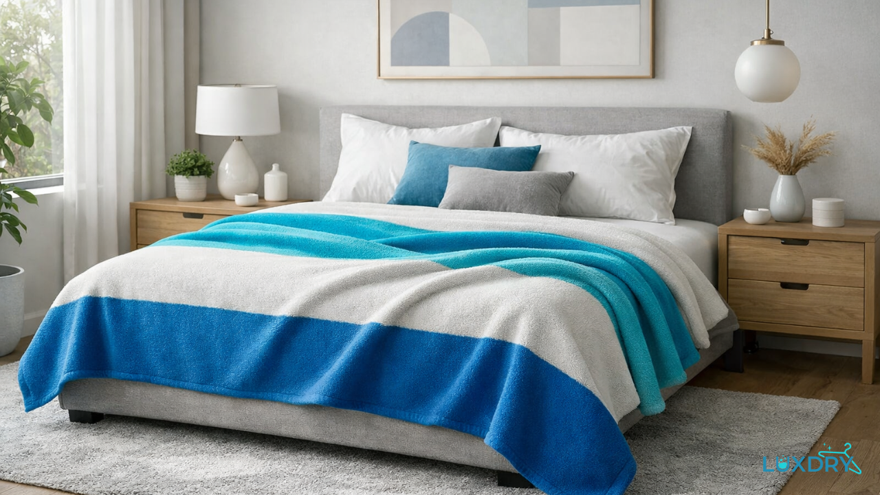 Blankets collect more than you can see: shed fibers, pet dander, skin oils, and humidity that can leave them heavy and stale. Luxdry focuses on lifting buildup throughout the fabric, then rinsing thoroughly so blankets come back cleaner, softer, and more comfortable against your skin.