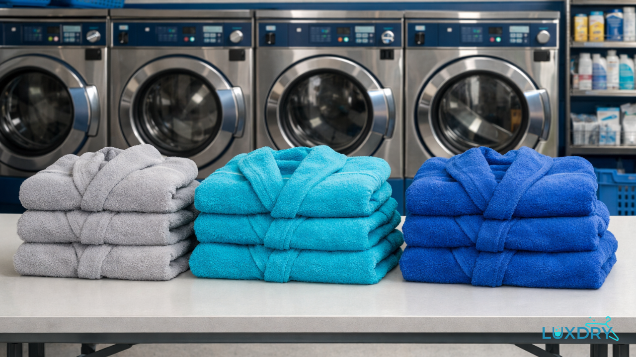 Luxdry cleans bathrobes, spa robes, lightweight robes, plush robes, waffle robes, luxury robes, and lounge robes. Whether your robe is used daily or reserved for comfort at the end of a long day, proper cleaning helps preserve softness, shape, and overall wearability.