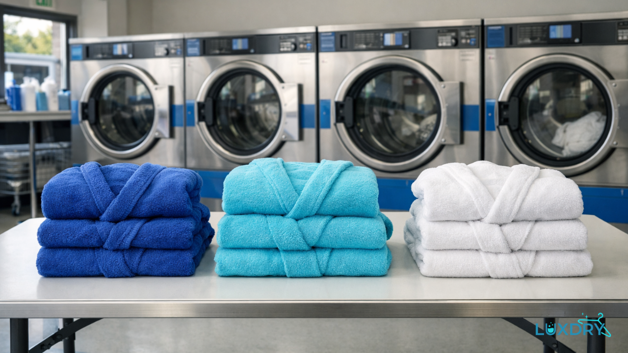 Luxdry cleans many types of robes, including cotton robes, microfiber robes, waffle weave robes, fleece robes, spa robes, hotel robes, lightweight lounge robes, and other specialty garments that need careful handling. We consider the fabric, thickness, trim, and overall construction of each robe so it gets the right treatment from start to finish.